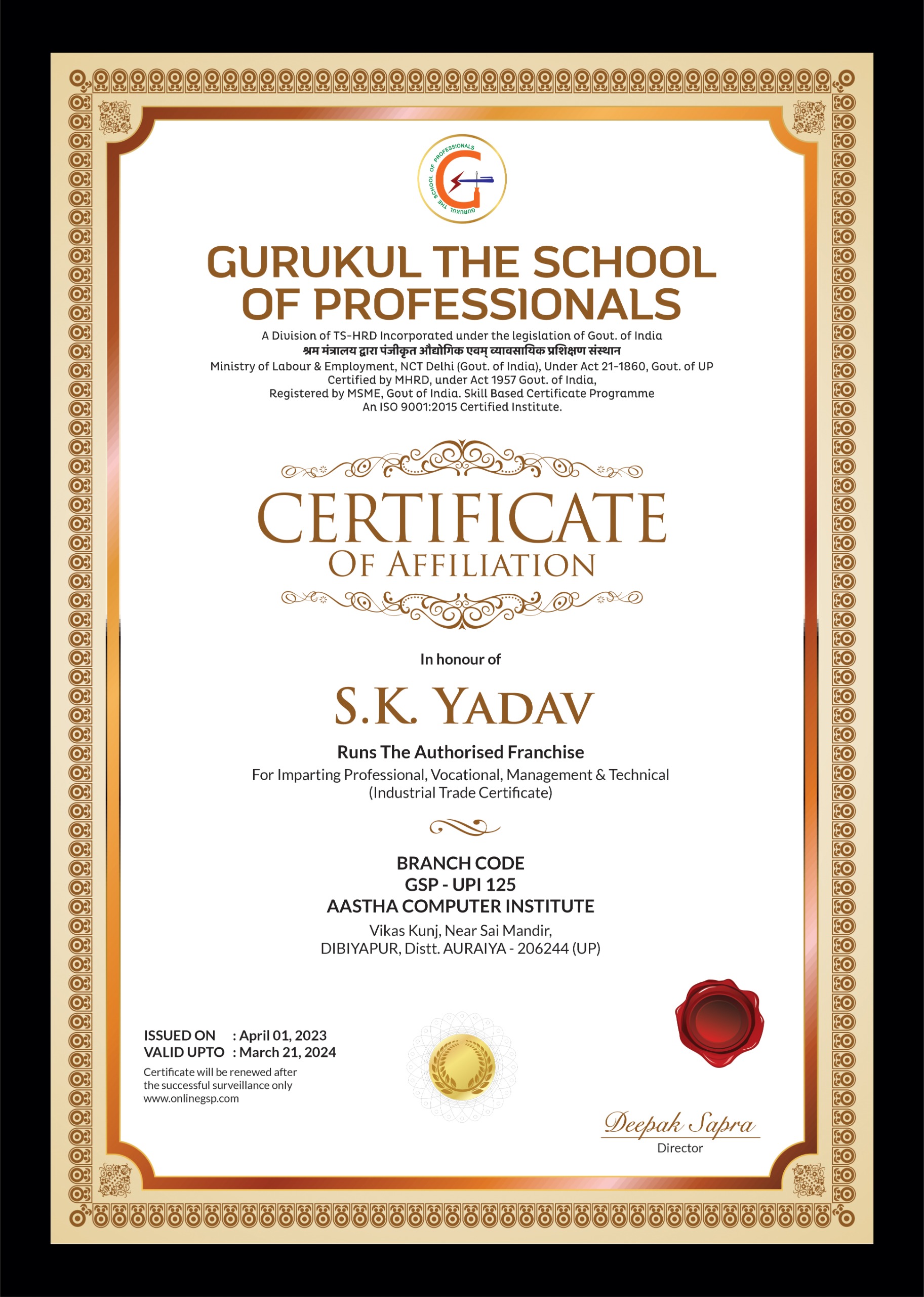 Gurukul the School of Professionals is an ISO 9001:2015 certified institute founded to deliver industry-focused education and training across Professional, Vocational, Technical, and Management disciplines. We are committed to providing modern, practical learning that prepares students for real careers.
